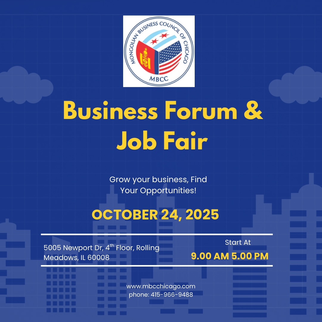 10/24-ний Баасан гаригт болох “Бизнес Форум- Хөдөлмөрийн Яармаг”-т хүрэлцэн ирээрэй. Муж, дүүргээс олгогддог зээл, буцалтгүй тусламжын мэдээлэл, карьеэрээ хэрхэн эхлүүлэх вэ, юу анхаарах вэ гэх мэт маш хэрэгтэй мэдээлэл өгөх болно. Бизнес эрхлэгчдэд ажилтан хэрэгтэй бол, ажил хайж байгаа хүмүүс ирж өргөнөөр оролцоно уу? Бүртгэлийг линк: